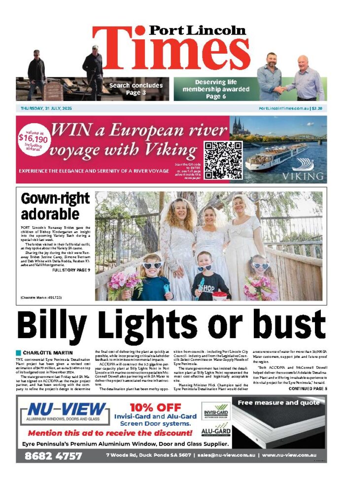 Port Lincoln Times – 31st July 2025 Subscribe or Login to see the rest of the content. Username Password * Remember Me Forgot Password News Expanded site to celebrate 20-year anniversary 05/12/2025 For two decades, the familiar roar of a Bear Express truck has been a constant on the roads of Port Lincoln and wider Eyre... Fight for Bight on doorstep 05/12/2025 A new film project released a trailer this week narrated by Australian actor and surfer Simon Baker, shining a global spotlight on the Nullarbor... Big whiting are widespread 05/12/2025 Here is what was biting and where across the region. West Coast Fishing at Yalata and the Dog Fence has been consistent, with nearly every...