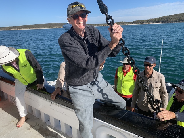 A reading of excerpts from Matthew Flinders’ diary by former channel seven newsreader and TPS member Jane Doyle OAM was followed by a Matthew Flinders’ adventure, with a volunteer crew using a Flinders’ map to take a tender boat to shore in search for water, as an Investigator crew had done in 1802.