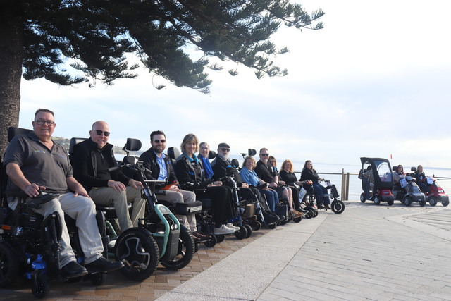 Respirico Healthcare team and other service care providers drove down the Port Lincoln foreshore in mobility scooters on Tuesday morning. (Liam Wormald: 502653_01)