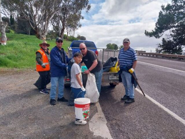 Cleaning up the roadside were Steve Heaven, Colin Clark, Nate Naish, Phil Naish and Billy Brine. (Supplied)