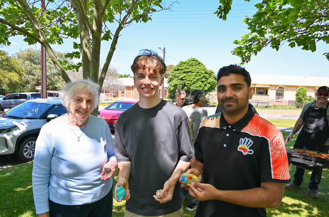 Jeanette Duncan donated items on the day, enjoying the atmosphere at Dickens Park with Ty Robertson and Sanjayson Hanuman. (Charlotte Martin: 510951_10)