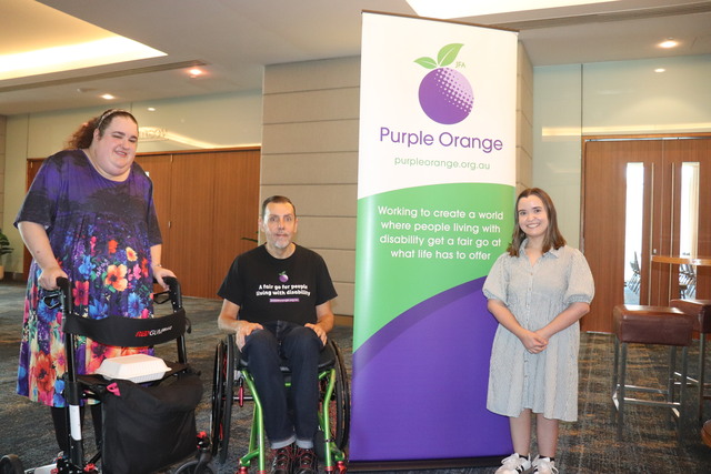 Port Lincoln SKILL SA Port Lincoln connector Alison Sabburg, SKILL SA Project leader Andrew Gibson and JFA Purple Orange Disability Inclusion Training Project leader Lily Dunkin. (Liam Wormald: 513948_04)