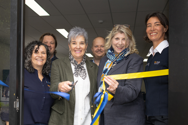 An expansion of Uni Hub Spencer Gulf's Port Lincoln University Centre was officially opened on Tuesday. Pictured cutting the ribbon were board member Kylie Petherick and Port Lincoln mayor Diana Mislov, and watching on were centre manager Cate Wuttke, the council's acting infrastructure manager Brad Tolley, chief executive Eric Brown and Uni Hub Spencer Gulf chief executive Anita Kuss. (Mitchell Paterson: 515291_01)
