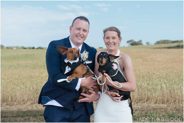 Dylan and Teigan Cook with their cheeky sausage dogs. (Jade Norwood)