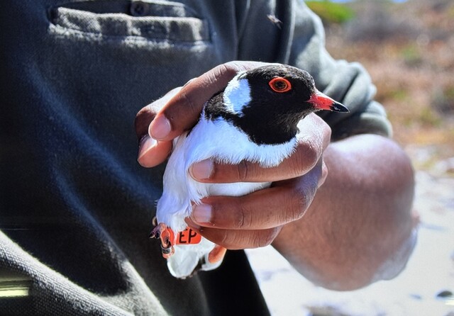 The very first hooded plover to be banded on Eyre Peninsula sporting its EP flag so its movements can be tracked. (Rachael Kannussaar)