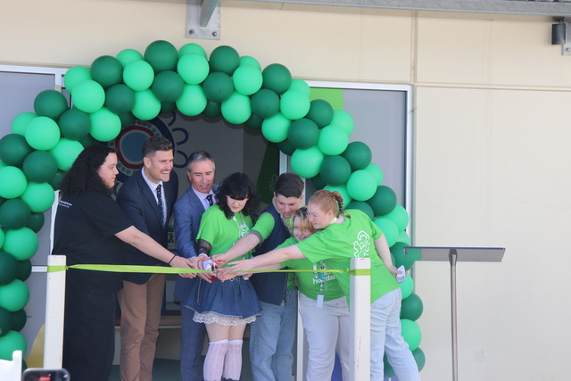 Storm cutting the ribbon with fellow Youth Reference Group members Tommy, Forrest and Kiara, alongside proud Barngarla woman Kenishsa Bilney and Country SA PHN chief executive officer Mark Hartigan and Youturn chief executive officer James Blevin. (Liam Wormald: 520502)