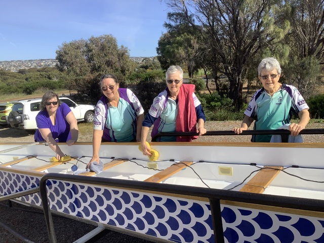Boat cleaning crew Carol Ramsay, Masto Myles, Lana Sheridan and Jenny Chillingworth. (Patrice Glass)