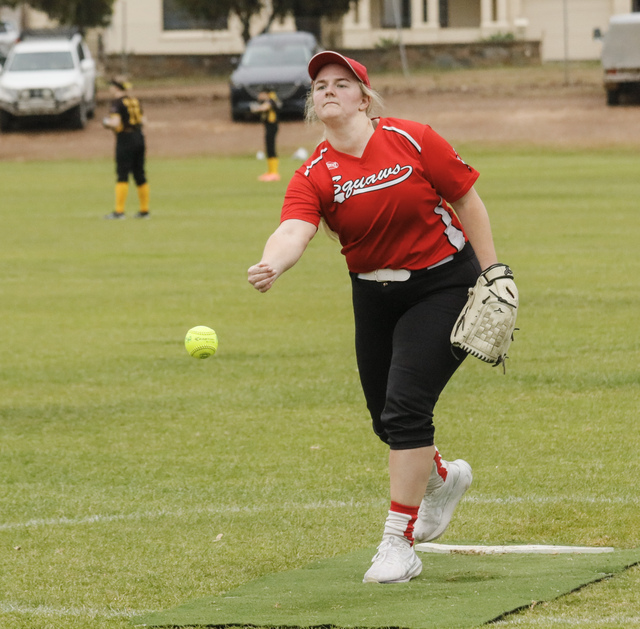 Ella Blewit pitches for Squaws in the B grade. (Jack Davies: 513158_03)