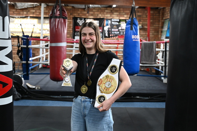 Issy Slater has won the state amateur boxing title in her first year of fighting, with the belt joining a handful of other titles she has won this year. (Charlotte Martin: 518674_01)