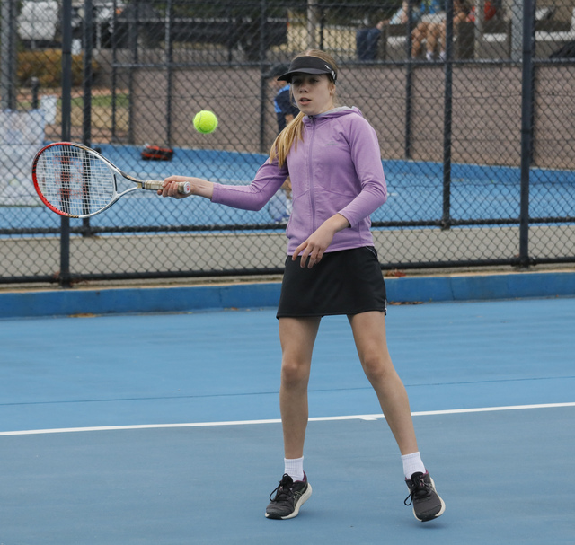 Pictured last week, Sana Cunningham plays a forehand shot in her match. (Jack Davies: 518681_02)