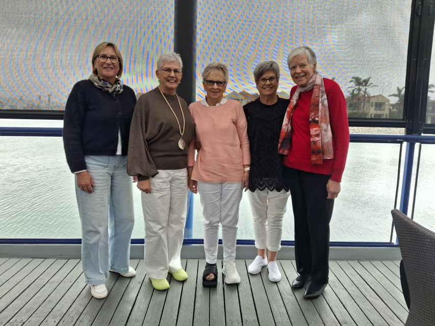 The Port Lincoln team of Jill Arcus, Kaye Freeth, Carolyn Cocks, Val Sharrad and Sue Bishop were the 2025 interclub pennants winners. They contested a match play event against Tumby Bay, Cummins and Coffin Bay. (Supplied)